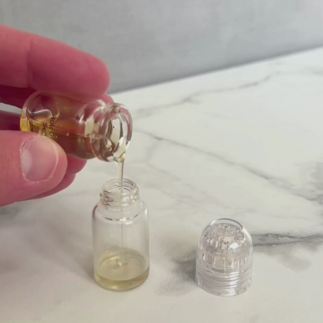 Microneedling changes everything. Tiny needles create microscopic channels in your scalp, allowing active ingredients to penetrate up to 5X deeper.